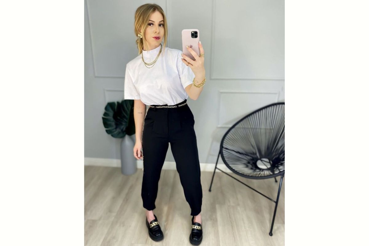 Esse conjunto é ideal para ambientes de trabalho com dress code mais descontraído, pois transmite uma imagem despojada e estilosa. Lembre-se de que o conforto é essencial no dia a dia, e o mocassim é perfeito para quem busca aliar moda e bem-estar.