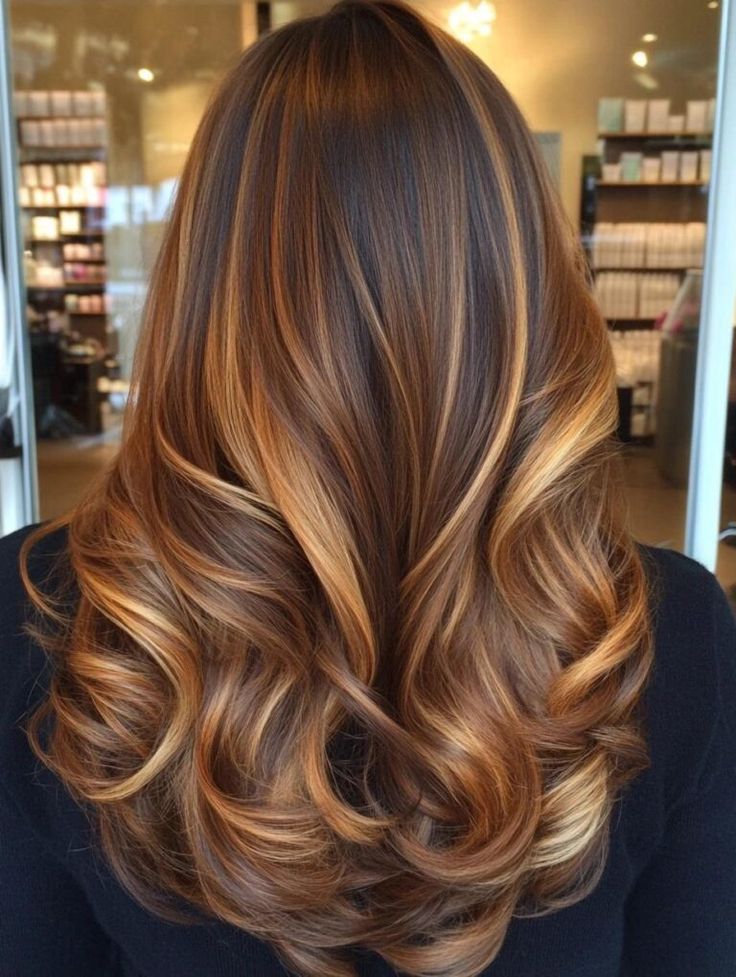 Entre as opções de balayage para morenas, o tom caramelo se destaca como um dos favoritos. Suas nuances quentes e douradas criam um contraste suave com a cor original do cabelo, proporcionando um toque de luz que destaca os contornos do rosto.