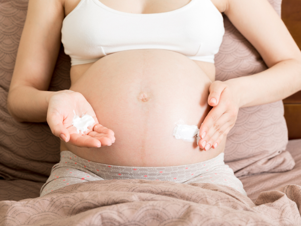 Embora a rotina do dia seja puxada principalmente no finalzinho da gravidez, passar cremes e óleos recomendados pelo obstetra ou dermatologista é essencial. Vale lembrar que a hidratação da pele ajudará com que o estiramento aconteça de forma calma, sem agredir a pele.