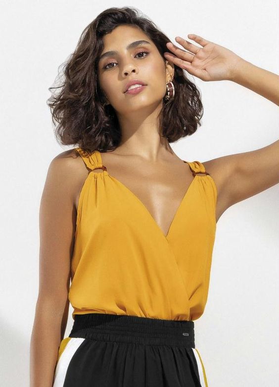 Para um toque de elegância e sofisticação, as blusas femininas modernas estão trazendo versões transpassadas e argolas, sem contar cores vibrantes para a estação. Também muito comum em tecidos diferentes, a confecção acontece normalmente em viscose, cetim e renda. Um arraso.