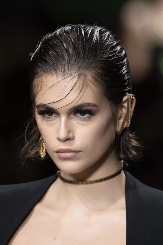 A tendência “wet hair” é a técnica de estilo que cria um visual de cabelo molhado, como se tivesse acabado de sair do chuveiro. Dessa forma, para criar a aparência elegante e moderna, utilizam-se produtos de cabelo específicos, como géis ou sprays de fixação, a fim de dar o efeito molhado.