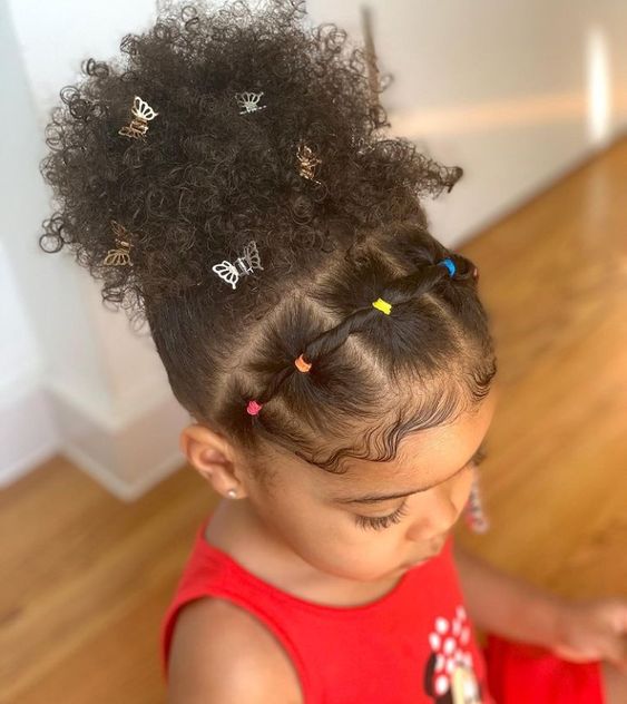 4. Coque com acessórios, por fim, está entre os melhores penteados de cabelos cacheados infantil para se investir