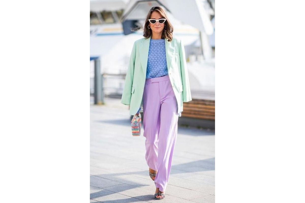 O azul pastel com rosa claro é uma escolha delicada e romântica, perfeita para encontros e eventos especiais. Um vestido azul pastel com acessórios em tons de rosa claro cria uma aparência suave e feminina.