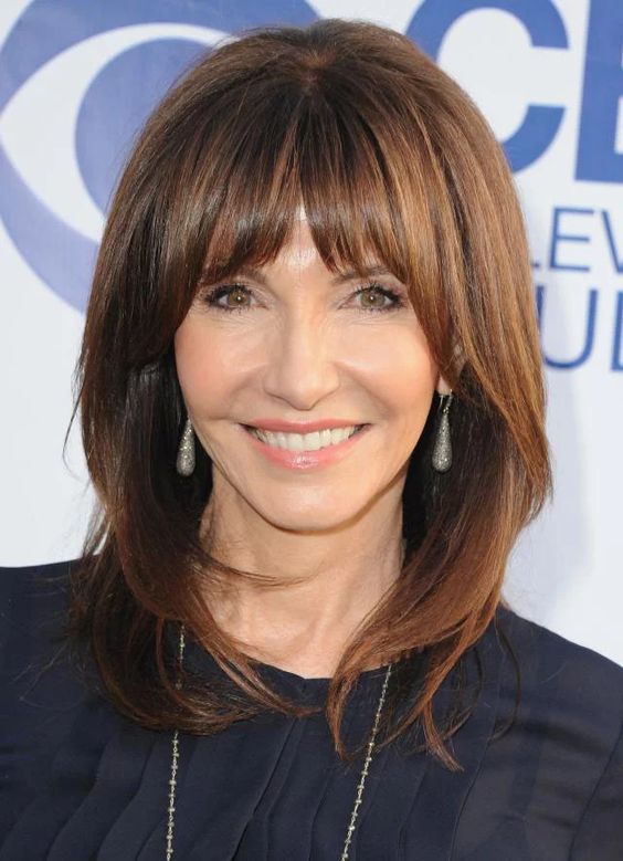 O Blunt Cut, ou corte reto, na altura dos ombros, combinado com uma franja lateral, é uma escolha interessante. O corte traz um visual polido e elegante, após os 50 anos, porém sem deixar de oferecer aquele todo novo e jovem.
