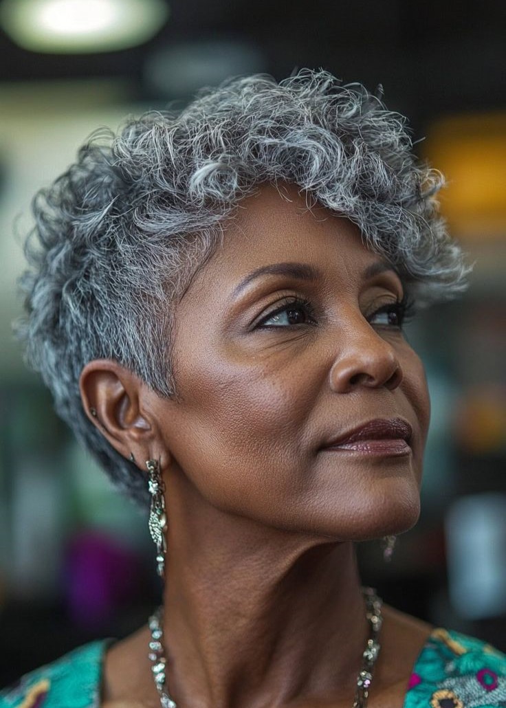 O pixie também destaca a coloração dos fios — naturais ou tingidos —, tornando o visual ainda mais marcante e sofisticado, sem exigir muito esforço no dia a dia.