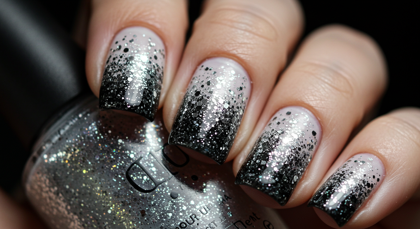 O degradê preto e branco (também conhecido como ombré) não perde a popularidade, e fica ainda mais incrível quando você adiciona glitter.