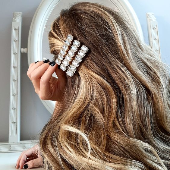 Engana-se quem pensa também que presilhas para cabelo não podem trazer cristais. A nova tendência, inclusive, dá destaque as pedrinhas e é indicada para momentos especiais. O modelo pode trazer variados estilos, sendo o feito de metal com cristais e strass, o mais recomendado em 2024. A combinação traz um toque de brilho.
