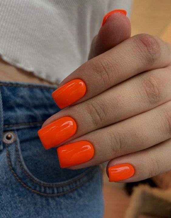 Unhas laranjas, no entanto, nunca saem de moda. Aqui ela pode vir clássica simples, até ter decorações mais expressivas e com personalidade.