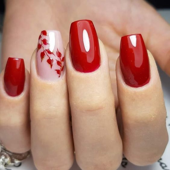 Por fim, mas não menos importante, as unhas vermelhas também ficam bem quadradas e decoradas. Portanto, invista na coloração sem medo.