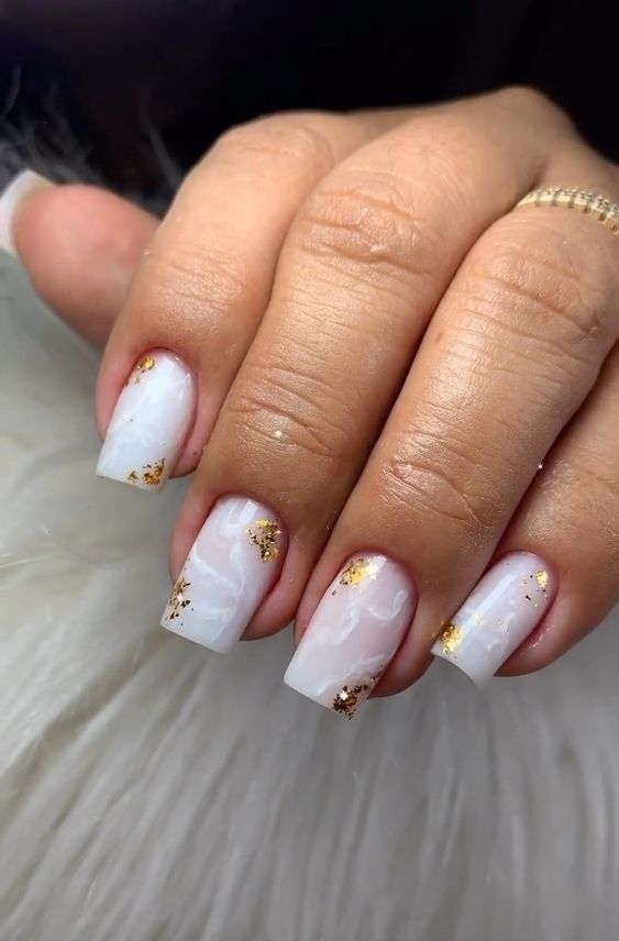 Por fim, as unhas brancas marmorizadas são uma ótima opção para quem quer algo moderno e único.