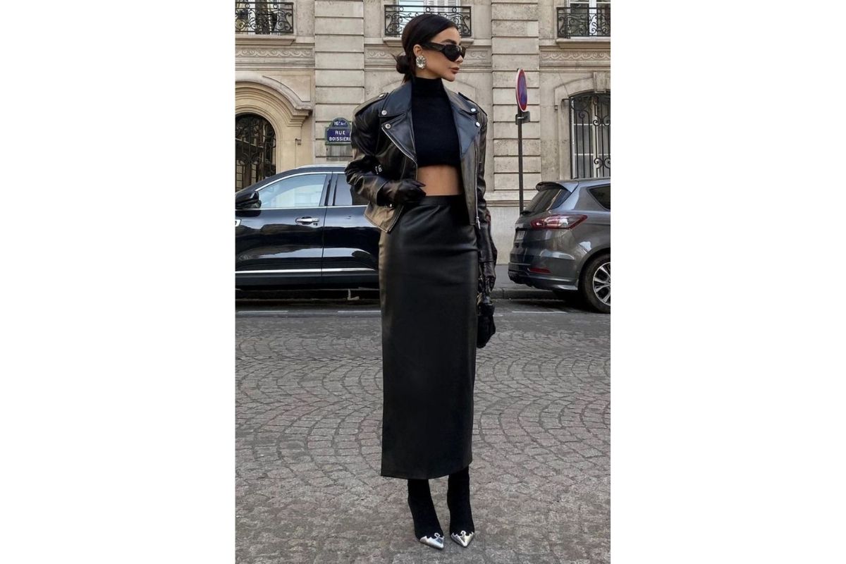 O look outono 2024 resgata o couro em peças-chave como jaquetas, calças e saias, trazendo de volta a estética rocker. Certamente uma tendência fácil de aderir! Não deixe de usar sua peça com tecidos mais leves, como algodão ou seda, e crie um contraste interessante no seu look.