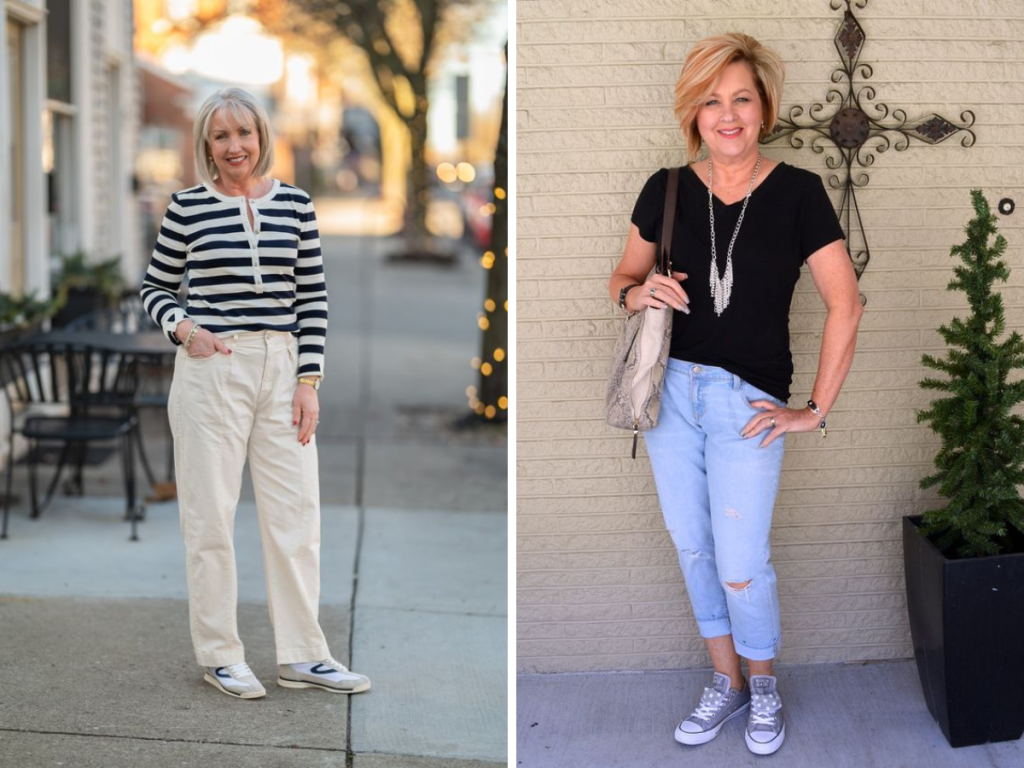 Looks com tênis combinam bastante com mulheres maduras no dia a dia. Seja para uma viagem ou então para aquela saída com as amigas, o calçado é sem sombra de dúvidas uma boa opção.