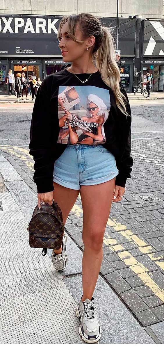 Se você deseja um look mais casual usando shorts jeans, vale combiná-lo ao moletom e ao tênis, se você preferir. A combinação traz um visual mais confortável e perfeito para o passeio com os amigos ou até mesmo para ficar em casa de forma estilosa. Assim, use sua criatividade.