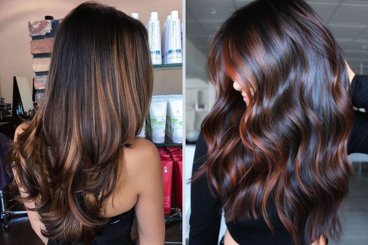 Não podemos deixar de fora o tom de cobre, que é uma opção ousada e vibrante para cabelos pretos. Essas luzes adicionam um toque de cor e criam um visual único e estiloso.
