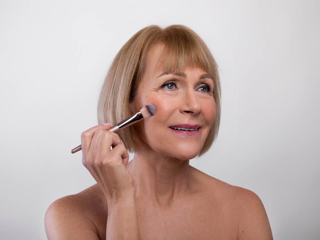 Produtos em pó, como blush e base compacta, tendem a se acumular nas linhas do rosto, realçando rugas e a textura da pele madura. Por esse motivo, maquiadores indicam a substituição por fórmulas cremosas, que oferecem melhor aderência e acabamento mais uniforme. Bases hidratantes e blushes em creme ajudam a manter o viço da pele sem marcar.