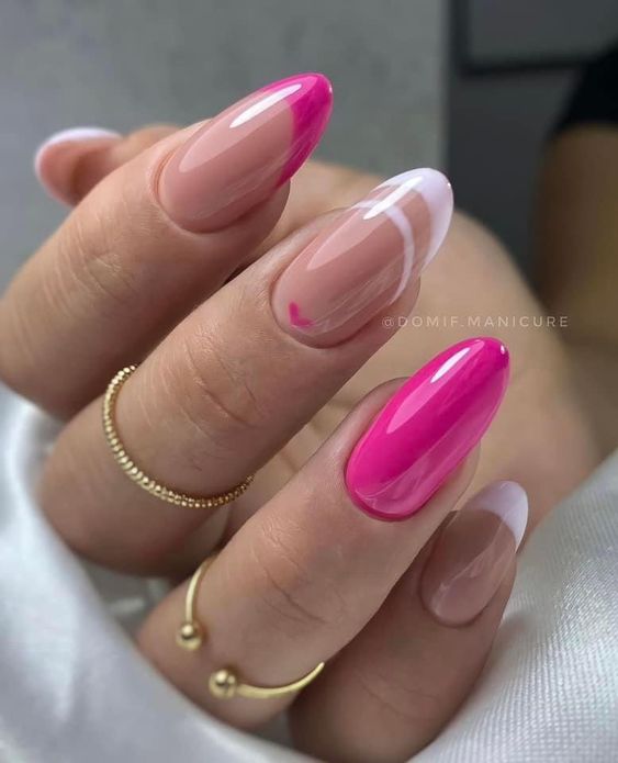 Uma manicure francesa rosa e branca, por exemplo, super combina com a tonalidade. Além disso, vale apostar em um estilo mais moderno como o ombré e gradiente. Por fim, não esqueça do glitter para dar aquele toque de glamour às suas unhas.