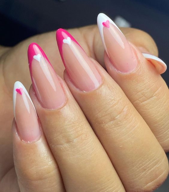 1. Francesinha rosa e branco está entre as unhas mais fofas e delicadas da escolha
