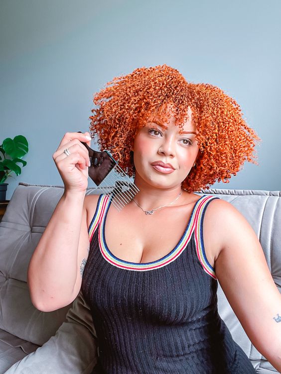 Este modelo é indicado para quem tem cabelos ruivos ondulados ou cacheados, já que as camadas desfiadas valorizam a textura natural dos fios.