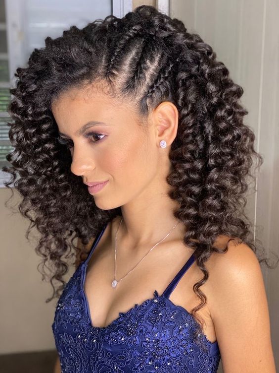 Seja ele um coque alto bagunçadinho ou então acessórios para lá de fofos como tiaras e presilhas para um toque de encanto sutil, não importa. Como vimos acima, tranças laterais ficam lindas em cabelos cacheados e são super versáteis. Porém, além delas, um rabo de cavalo alto e volumoso, também combina super bem.