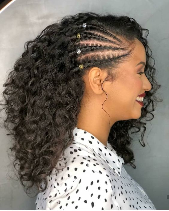 Aqui a versão pode trazer detalhes que combinam com o look e também envolver tranças bem rentes ao couro cabeludo, sem problemas.