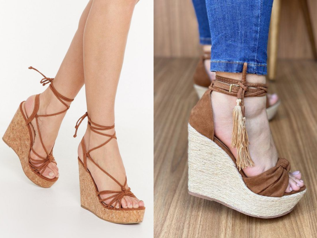 A sandália anabela com laços também será uma das sensações do próximo ano. Aqui você pode encontrar o laço na própria decoração, assim como ter o item decorativo em separado.