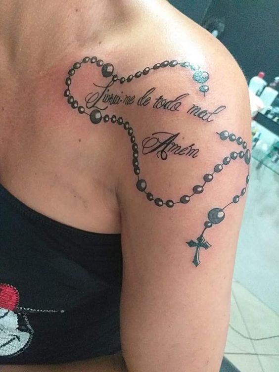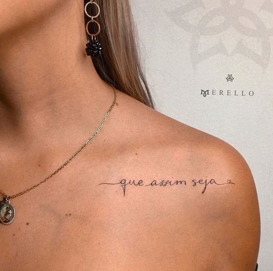 Palavras ou frases otimistas, por outro lado também se encaixam bem. Fé, Gratidão, Amor, Deus ou versículos da Bíblia também acabam entre os elementos escolhidos por várias pessoas que querem tatuar algo em seu ombro.