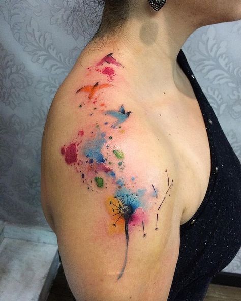As tatuagens desse estilo chamam atenção pela maneira como as cores são colocadas, como se realmente tivessem sido pinceladas sobre a pele. Seus desenhos, normalmente, trazem efeitos de respingos e transição de cores.