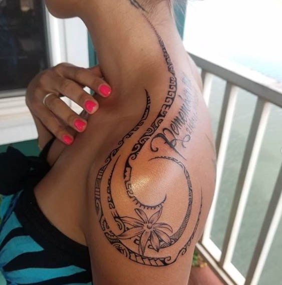 Entre as mais comuns quando falamos de tatuagem feminina no ombro temos nomes próprios, nomes de pessoas especiais para a pessoa e até mesmo parentes ou filhos.