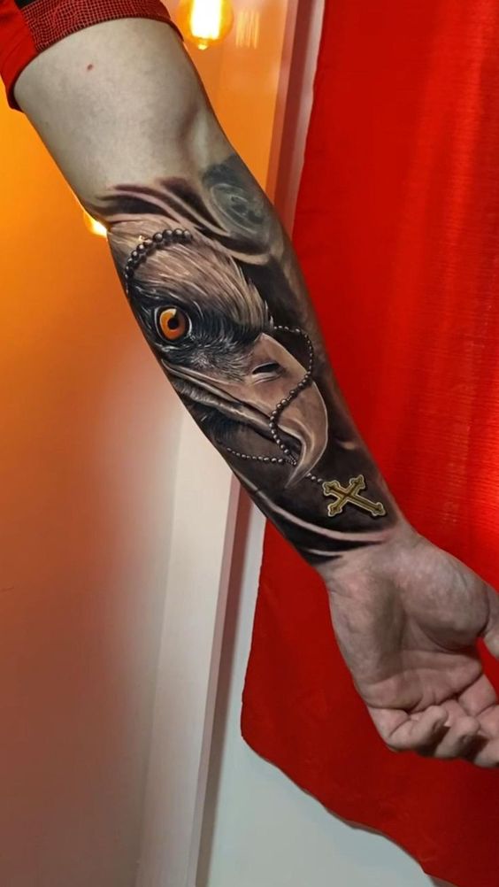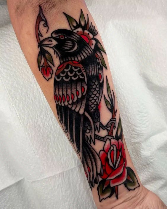 Tatuadores recomendam o desenho para criar um efeito marcante que cobre uma grande parte do braço, conferindo um aspecto tradicional e poderoso.
