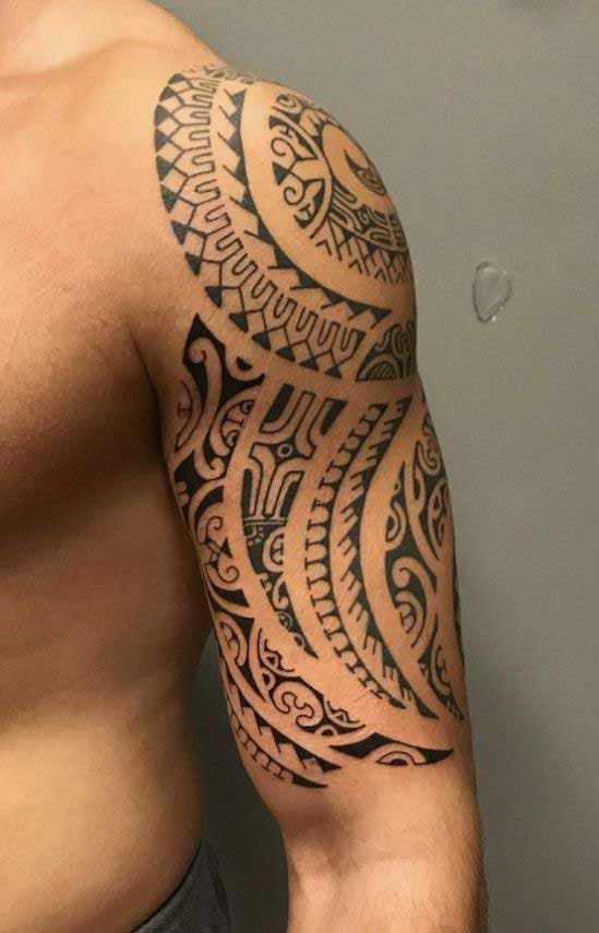 2. Tatuagem tribal polinésia no ombro também extensa