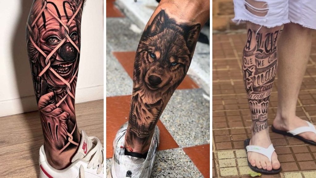 Essa arte pode envolver toda a panturrilha ou coxa, criando um visual robusto e cheio de personalidade.
