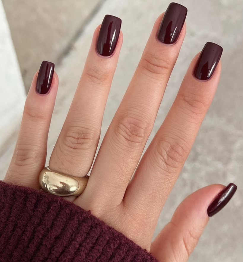 O vermelho burgundy é uma das tendências para unhas em 2025 ao lado do black cherry.
