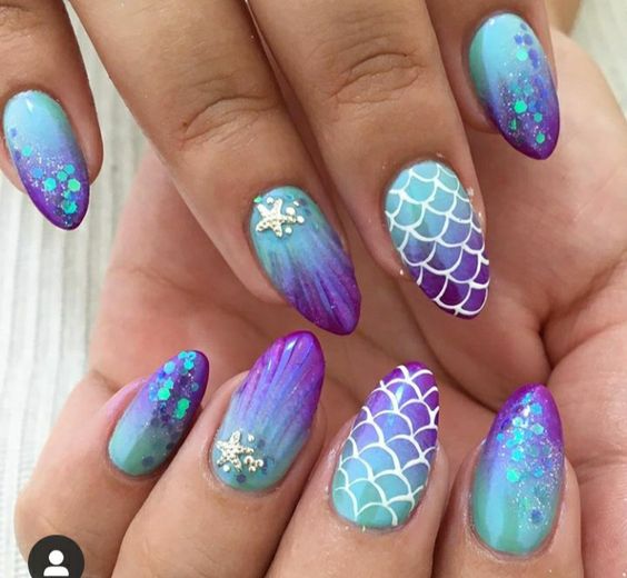 7. Escamas de peixe, no entanto, também combinam super bem com as unhas criativas da praia