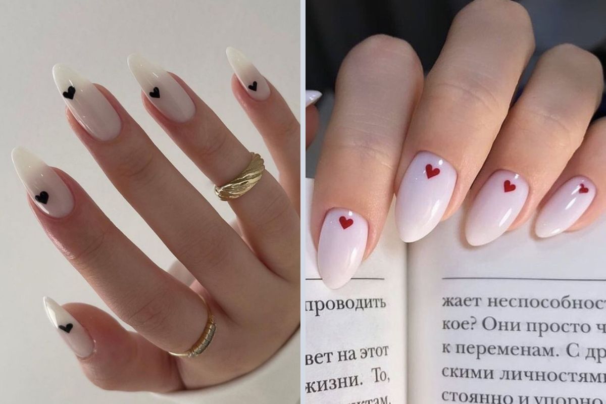 Os corações são uma escolha popular para unhas delicadas, especialmente para ocasiões românticas. Essa opção é uma maneira encantadora de expressar seu amor pela moda e pela beleza, enquanto mantém um visual sutil.