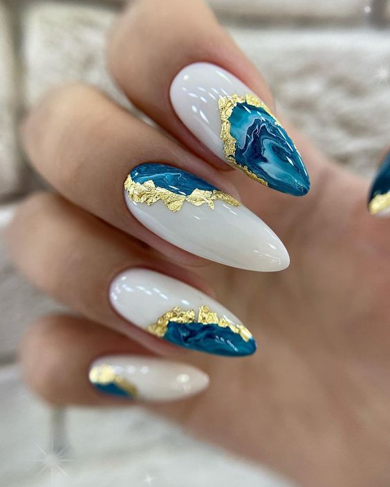 Para um visual moderno e elegante, a técnica da marmorização tem trazido cores e estilo nas unhas decoradas de Reveillon. Traga cores expressivas e terá uma unha incrível para a virada do ano.