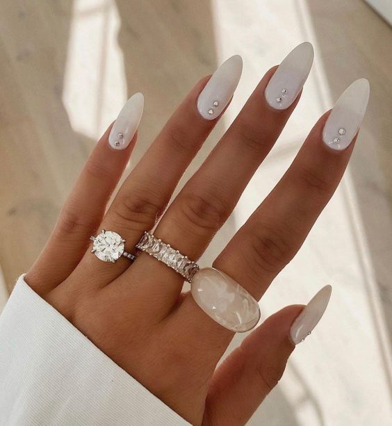 Para quem busca unhas decoradas para o Reveillon mais delicadas e minimalistas, pode apostar em cores neutras como o branco. Além disso, embelezar a cor com pequenos strass para dar o efeito encantador.
