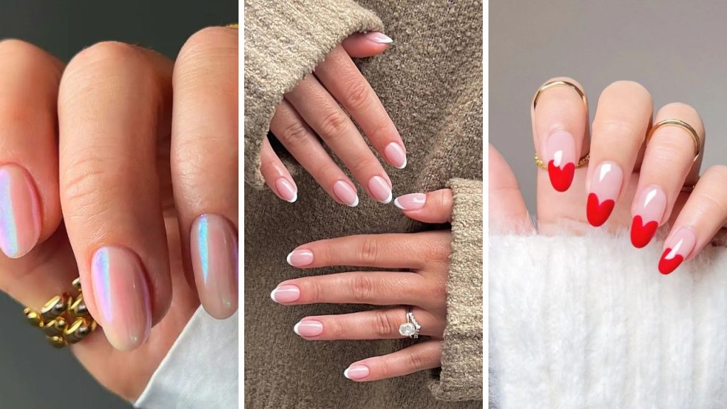 Esse design é feito com unhas de formato amendoado, onde a ponta é pintada em forma de coração, geralmente em cores como vermelho, branco ou rosa.