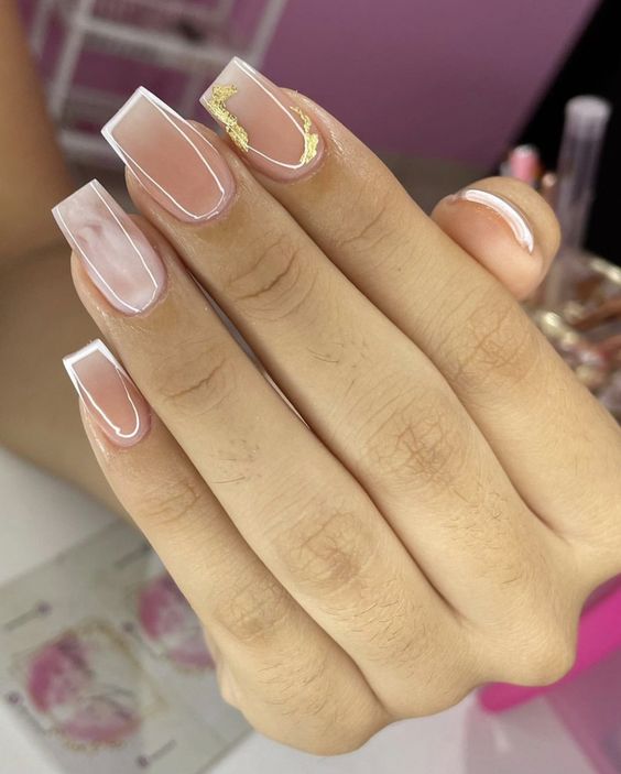 Nossa segunda opção da lista vem do dourado encapsulado. Embora seja clássico nas unhas encapsuladas claras, a opção é coringa caso você procure uma nail art mais clean, porém luxuosa.
