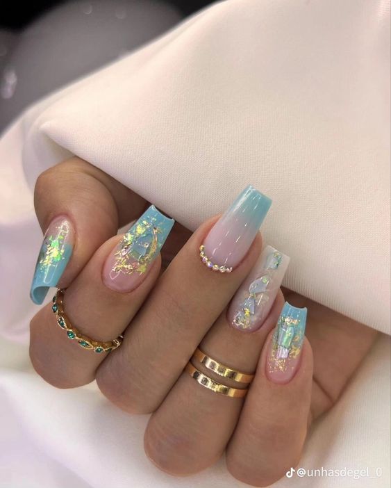 2. Um tom azul mais delicado também cria unhas incríveis neste formato