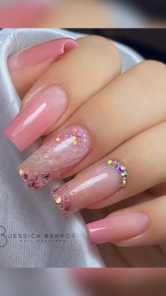 5. Rosa claro com pedrarias traz encanto e beleza ao visual sem dúvidas