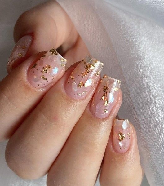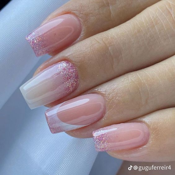 10. Por fim, modelos de unhas encapsuladas delicadas com glitter sutil trazem elegância e sofisticação
