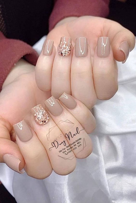 7. Assim como o verde, unhas encapsuladas delicadas também ficam incríveis em nude ou tons terrosos