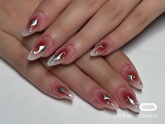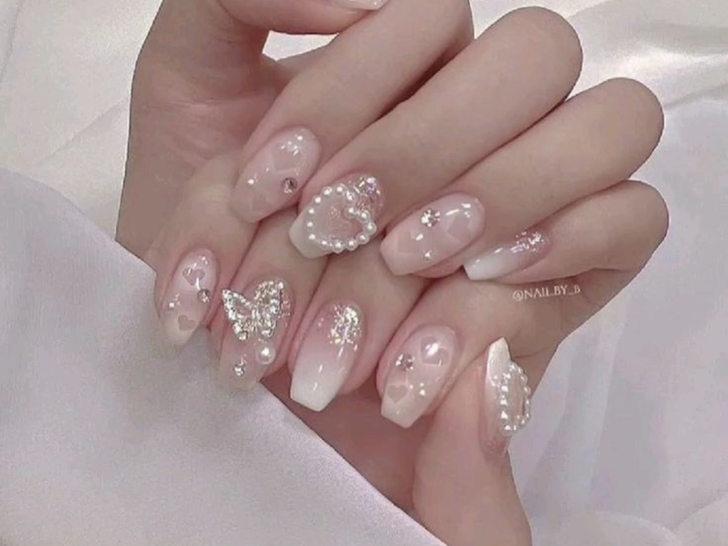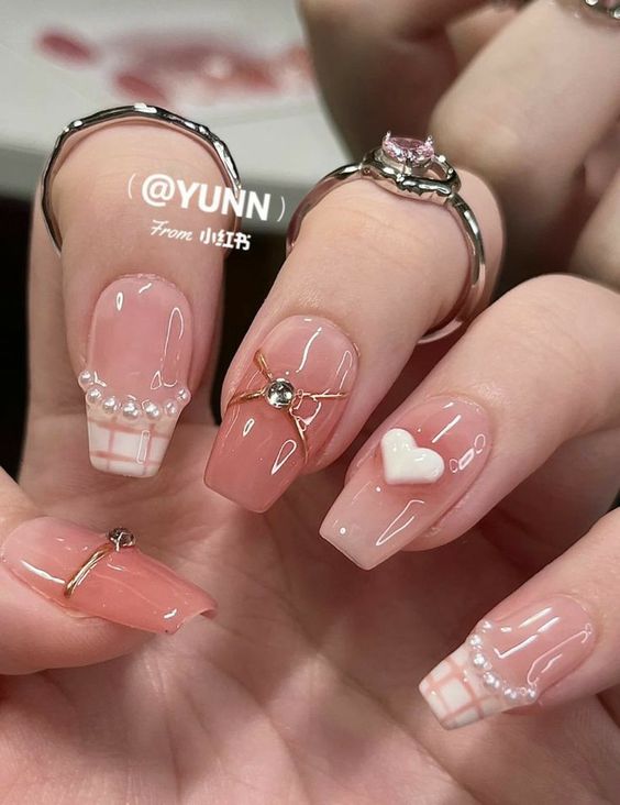 4. Blush nail, por sua vez, também se encaixam bem com pedrarias se você quiser